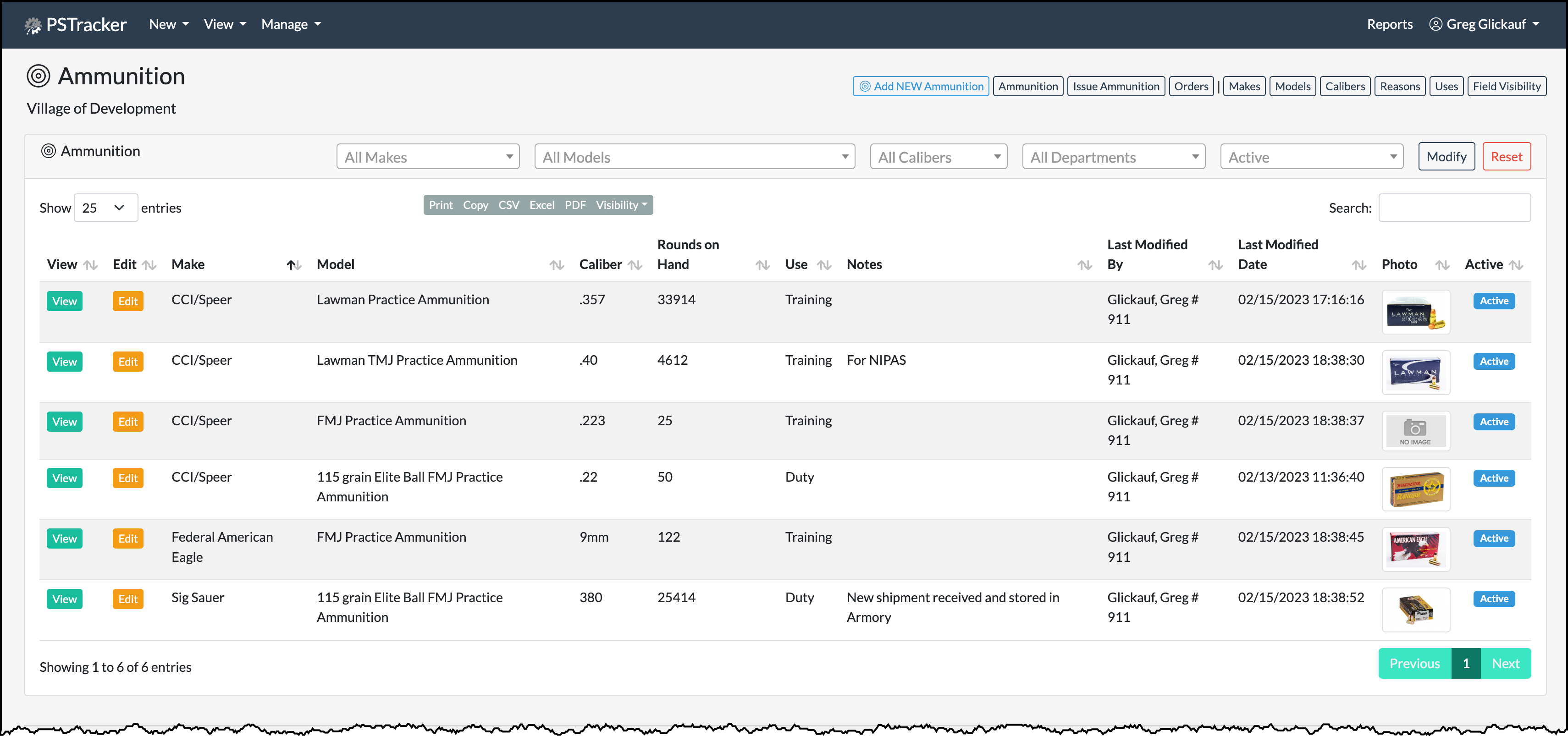 Track your agency’s ammunition. Quantity on hand, ordered and to where and whom it is disseminated.