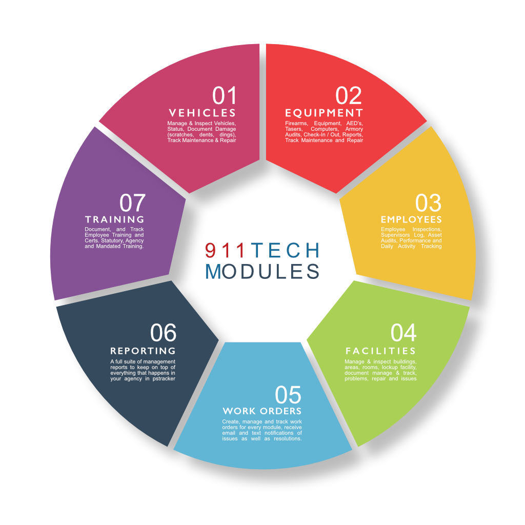 We reduce the number of software products your agency needs. 911 Tech manages your vehicles, equipment, employees, and facilities. 911 Tech creates and manages work orders, offers custom reports, and tracks employee training.